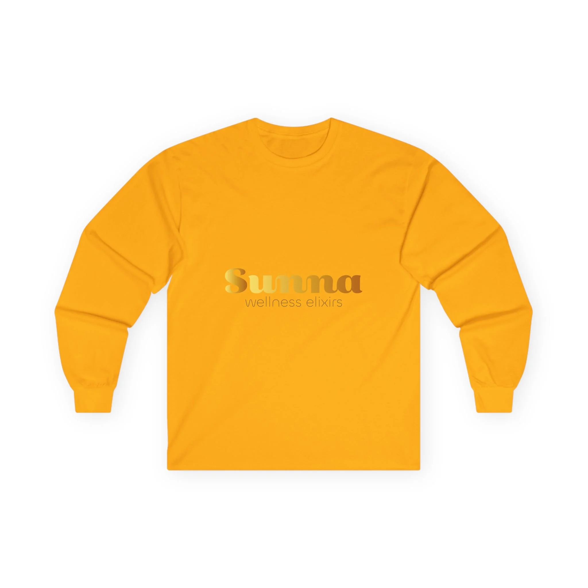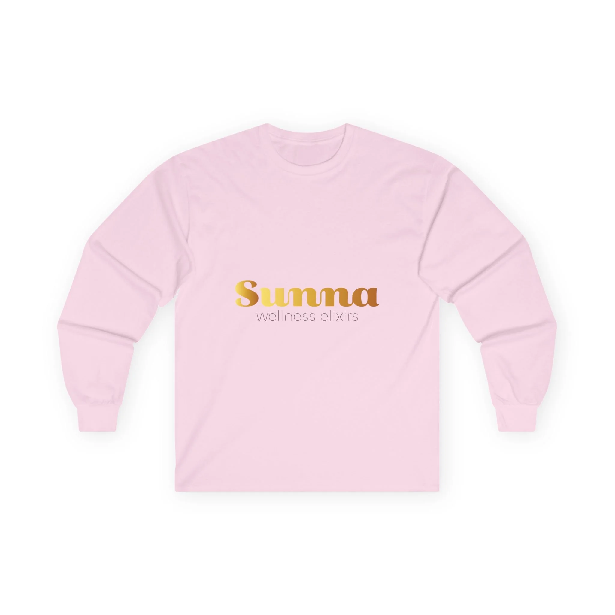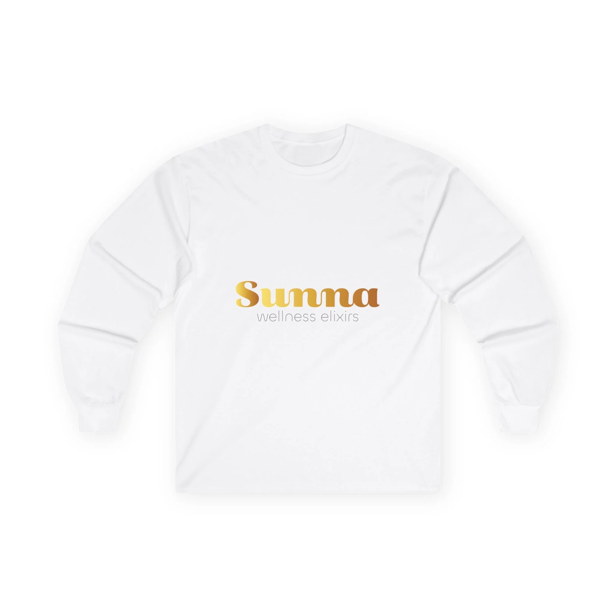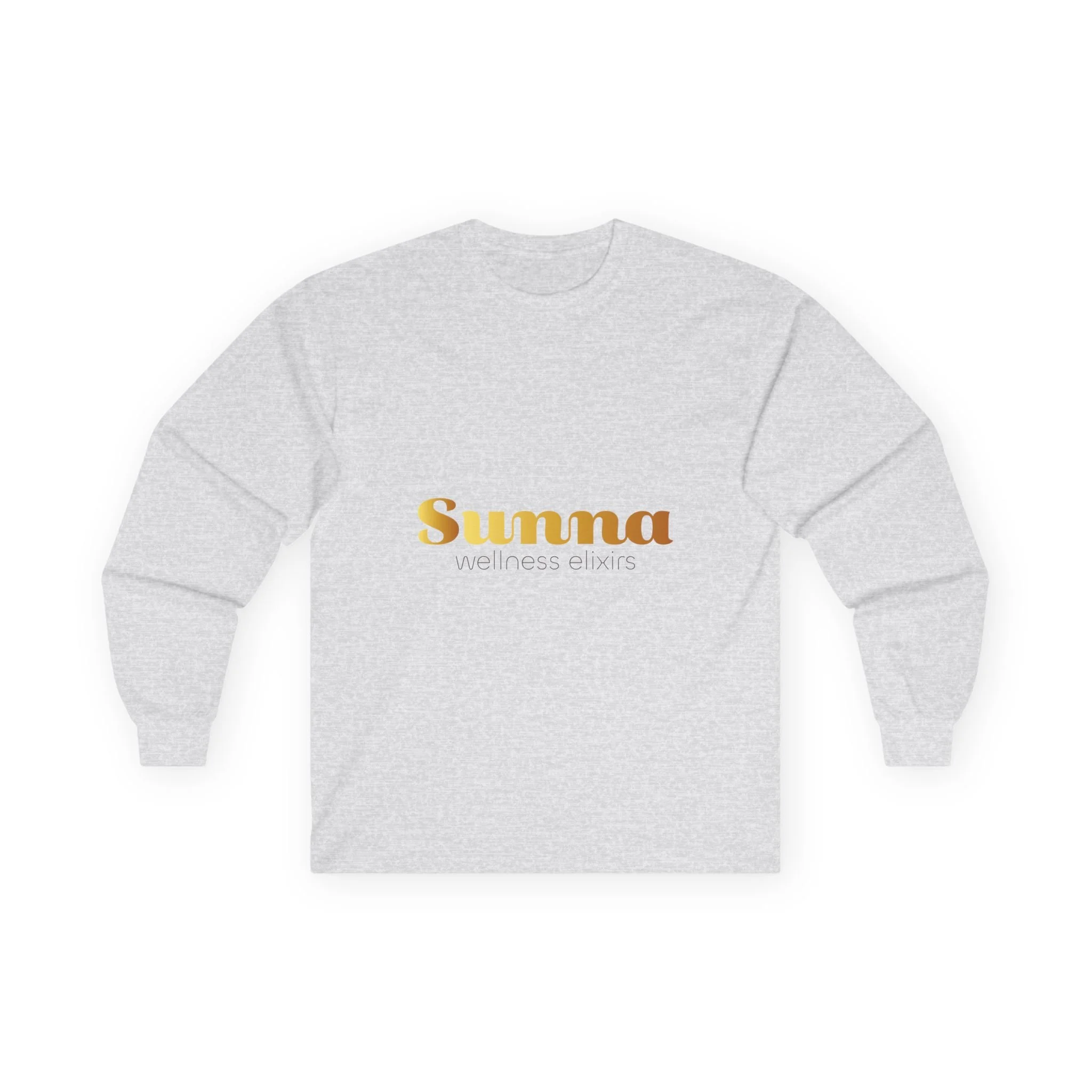 The Sunna Wellness Elixir Long Sleeve — your go-to layer for slow mornings, post-sauna glow, and everyday ease. Made from 100% breathable cotton, this tee feels soft, grounded, and effortlessly elevated. Lightweight yet cozy, it moves with you — from your sunrise ritual to your evening wind-down. A reminder to slow down, stay rooted, and soak in the good energy.